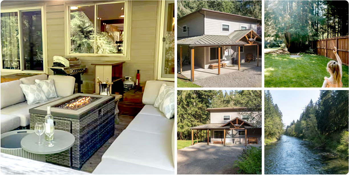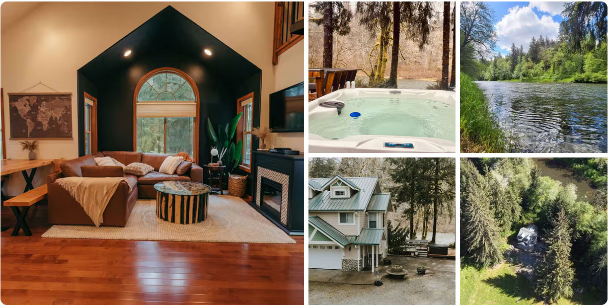 Escape to this stylish 2-bedroom, 1-bath retreat on the Sol Duc River. Perfect for up to 4 guests, enjoy private river access for kayaking and paddleboarding. After a day of adventure, unwind in the 4-person hot tub or gather around the poker and game table. Thoughtfully designed with modern comforts, this getaway offers the ideal mix of relaxation and fun. Whether you're exploring the Olympic Peninsula or simply soaking up the serene river views, your perfect getaway awaits! Click to view.