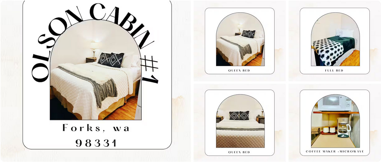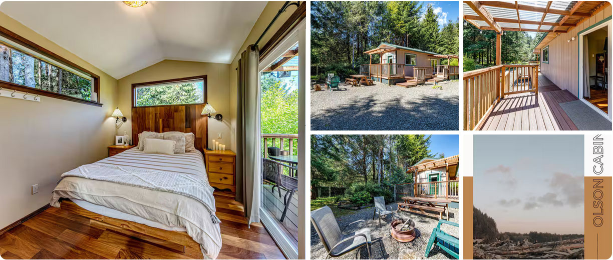 Olson's Cabin #1 is nestled among the trees & forest and is 2.6 miles from epic Rialto Beach. Once a Rainier Timber Company housing cabin, the Olson Cabin has a retro charm with an ideal location to attract lovers of the park & crashing waves of Rialto Beach. Click to view.