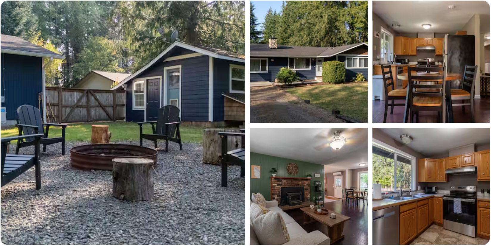 Dog & kid friendly 3bed/2bath home that sleeps 8. Just 3 blocks from Clallam County public beach access, with hiking trails right behind the house. Enjoy a fenced back yard, fire pit, BBQ, and full kitchen. Easy boat parking, perfect for families, beach days, and outdoor adventures! Click to view.
